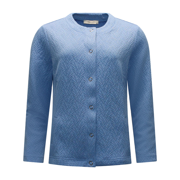 Het Sensia vest Monique heeft een ronde hals en is voorzien van drukknopen aan de voorzijde. Twee steekzakken maken het praktisch in gebruik. Het vest is lichtblauw met offwhite accenten en draagt comfortabel dankzij de soepele zachte stof.